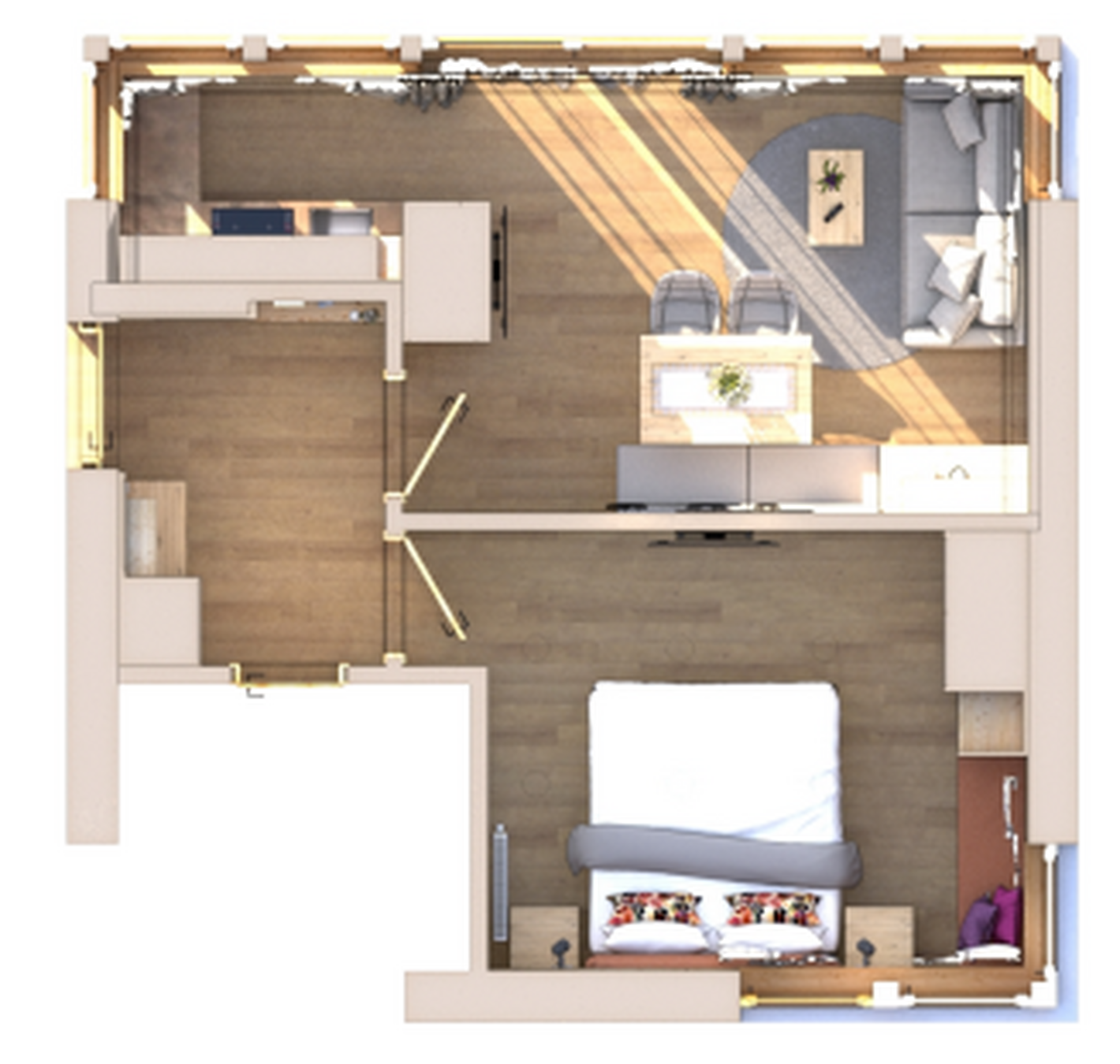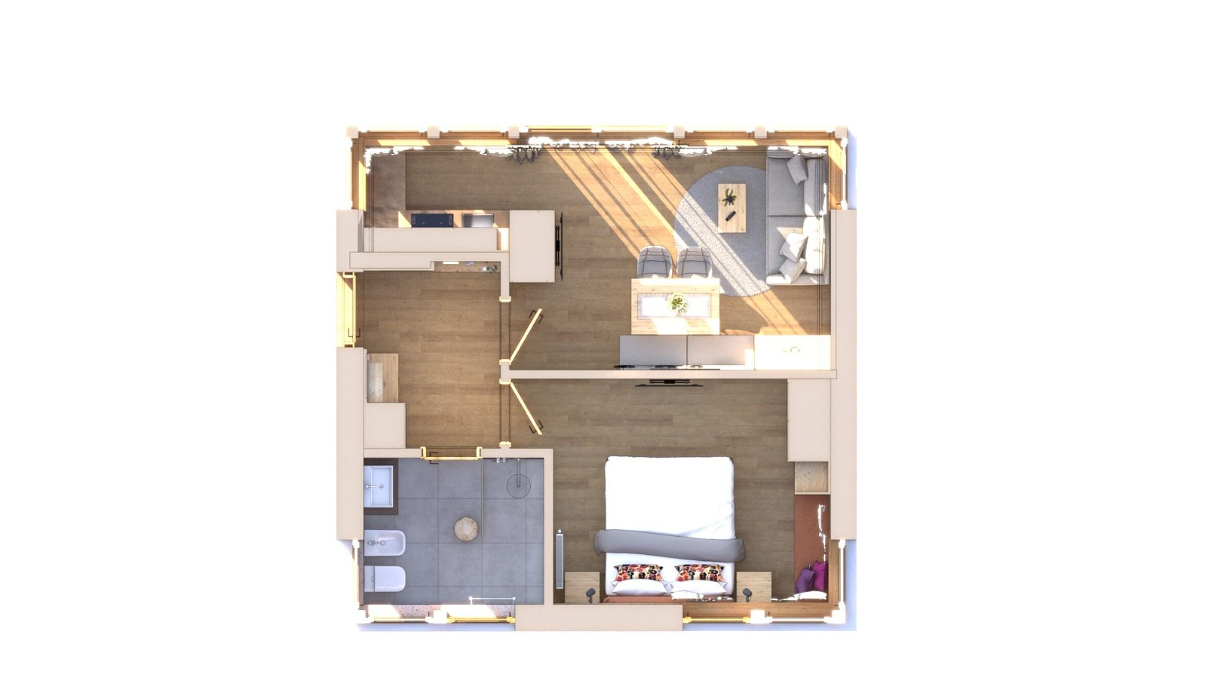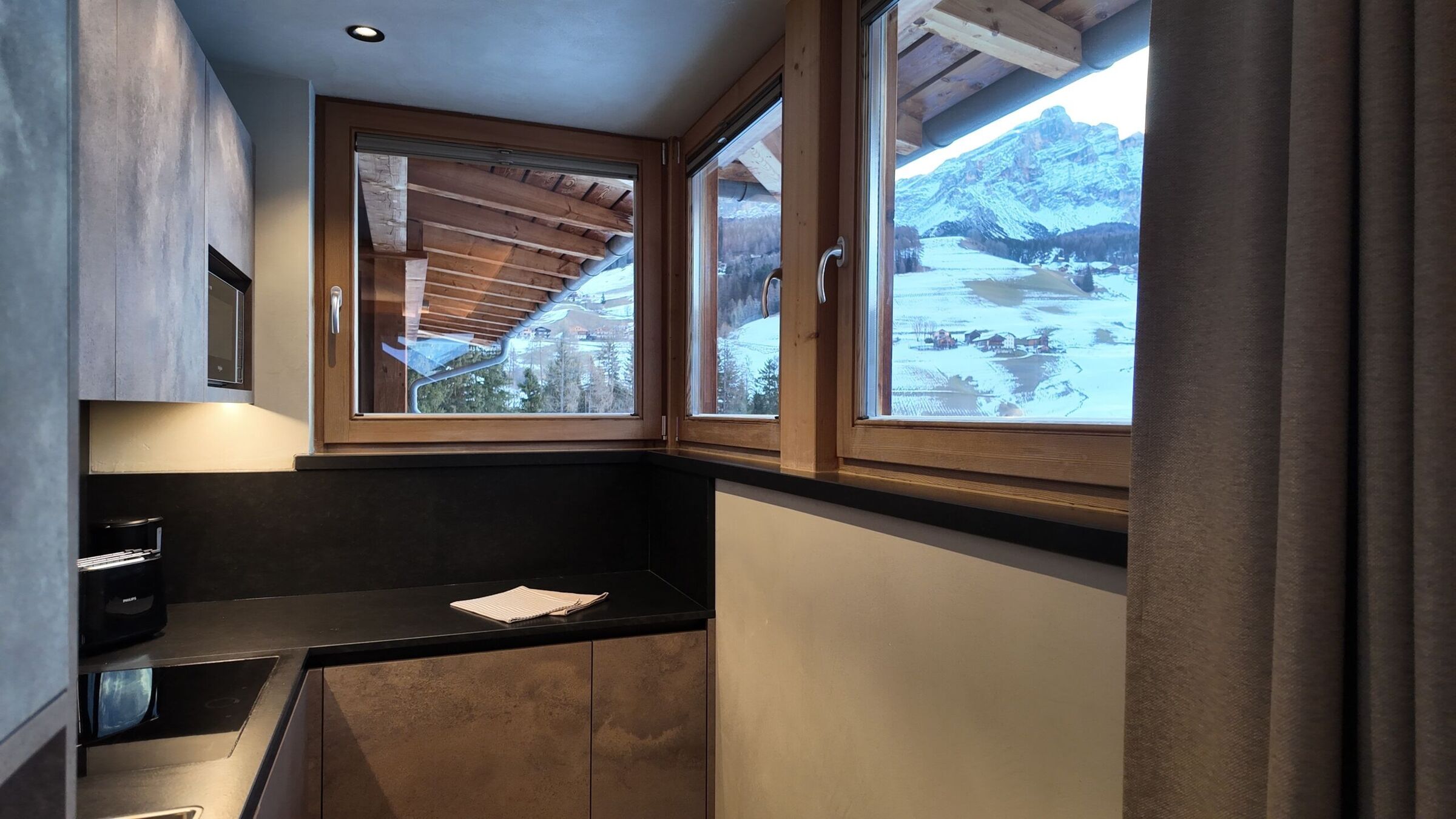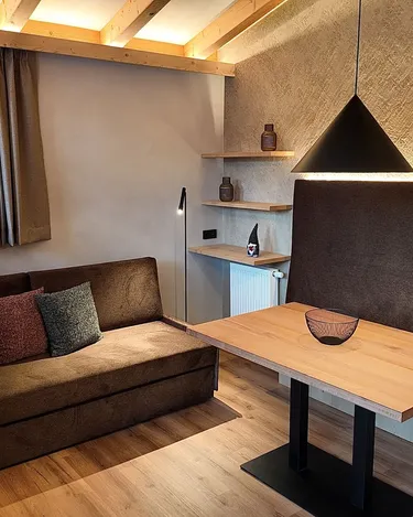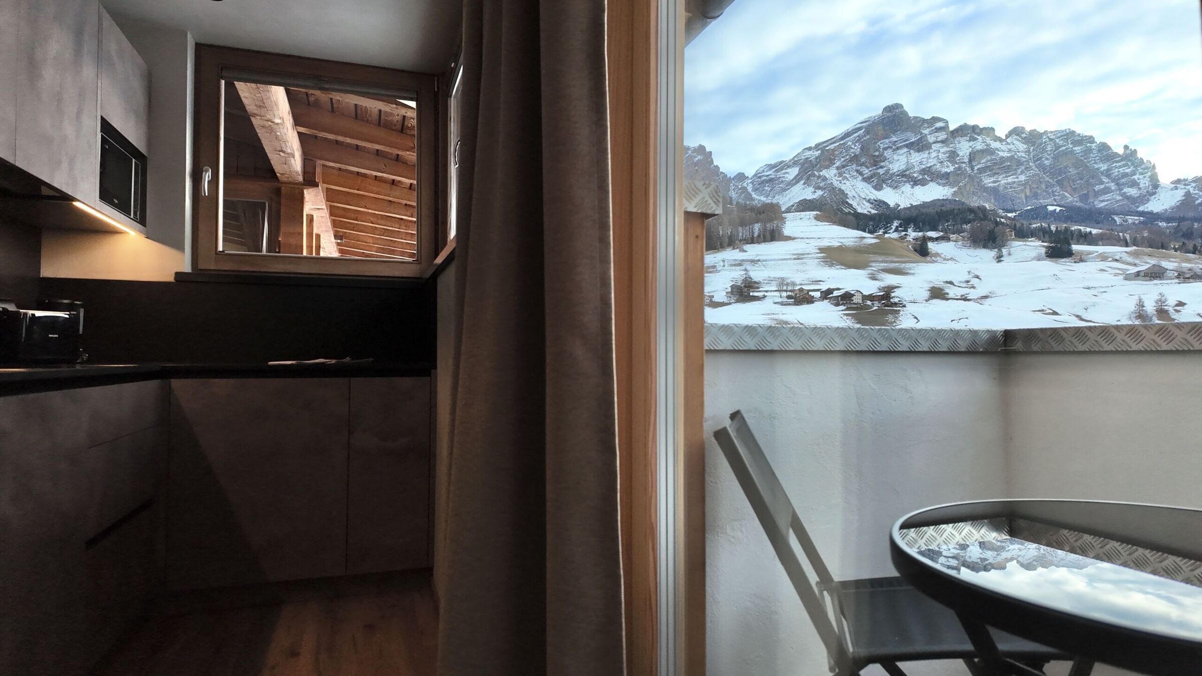 Small and cozy, perfect to accommodate 2 people. The apartment offers a bedroom with a double bed (that can be separated), a bathroom, a fully equipped kitchen with living room, and a balcony with a view of the Dolomites.