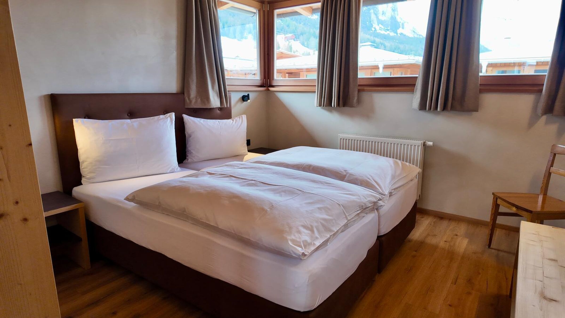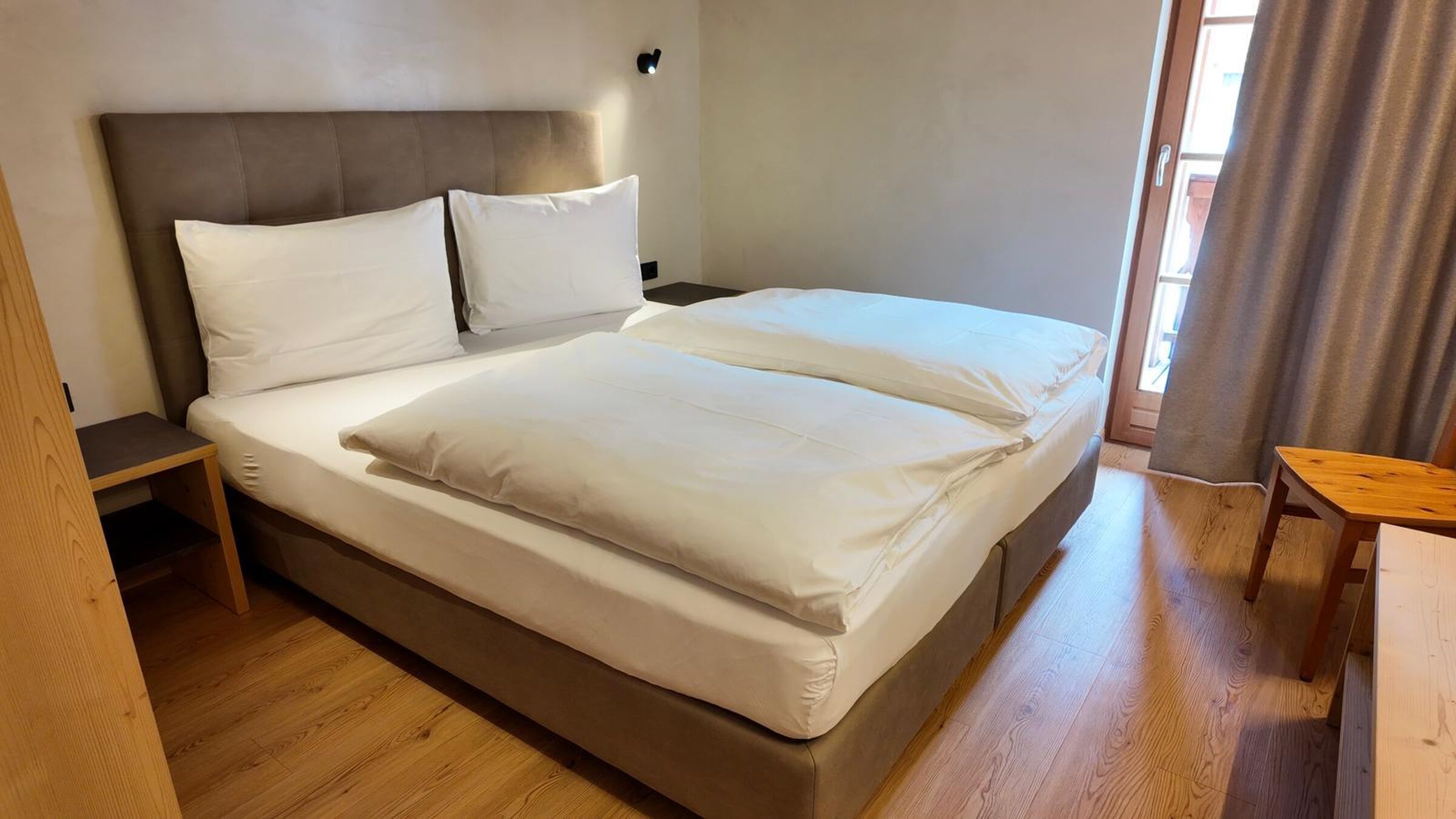 Comfortable and spacious, perfect for accommodating four people. The apartment offers two bedrooms with double beds (that can be separated), a bathroom, a fully equipped kitchen with living room, and a balcony or terrace with view on the Dolomites.
